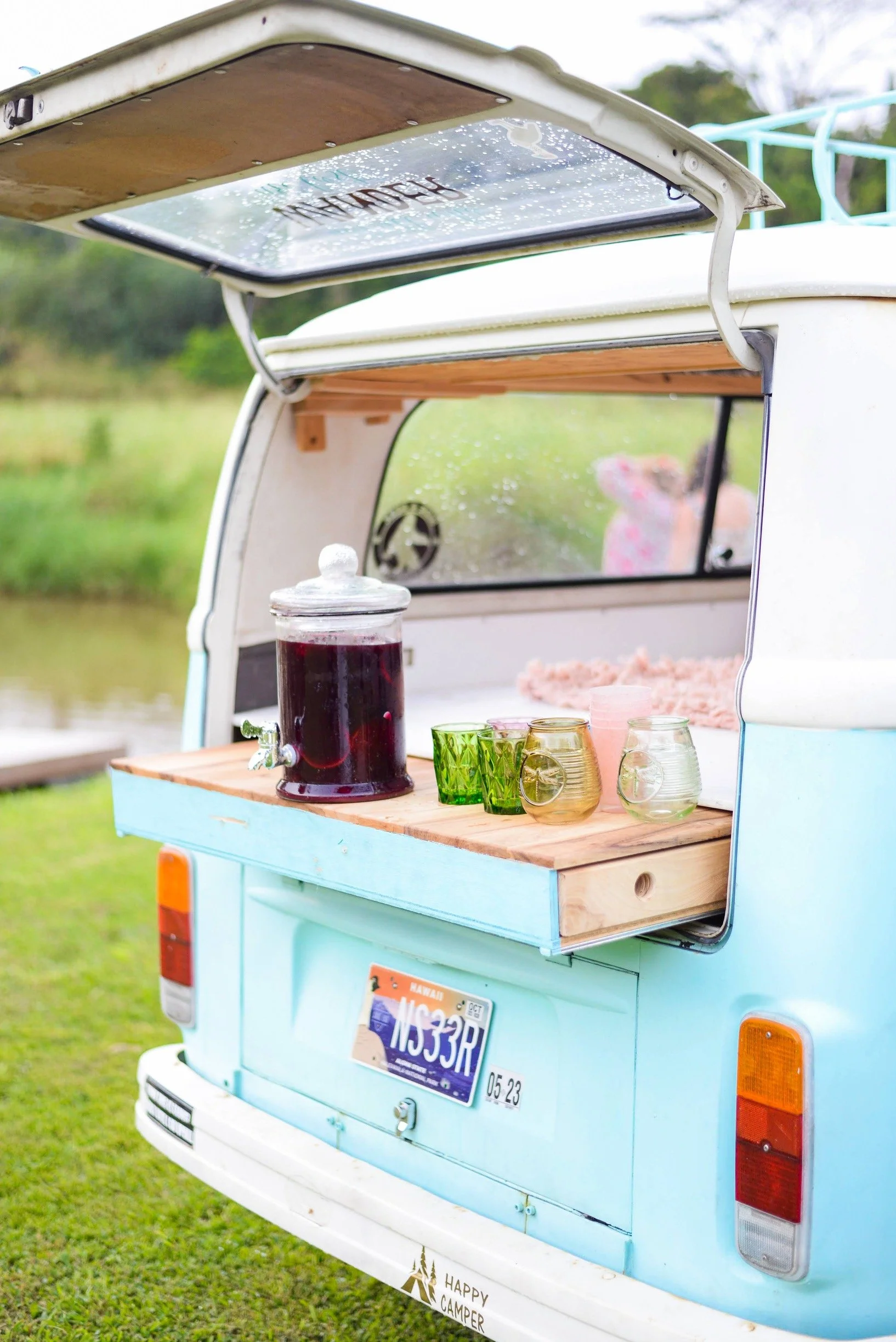 Our VW van can be used as a bar, dessert, snack, or shave ice station, a photography backdrop, or lounge area for weddings and special events. We look forward to providing an unforgettable experience for you and your guests.